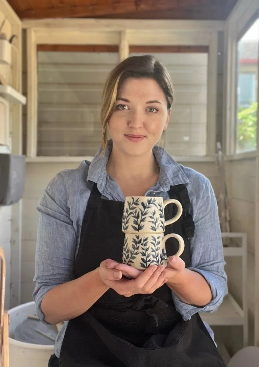 I work with a variety of stoneware clays and hand paint my pieces using cobalt blue slip. I decorate my work with free-hand patterns and abstract brush strokes inspired by nature and the landscapes that surround me. My aim is to create pottery that is rustic and sturdy in form yet intricate and ornate in design. My work is designed for every day use in the hope of adding a little joy to daily rituals.